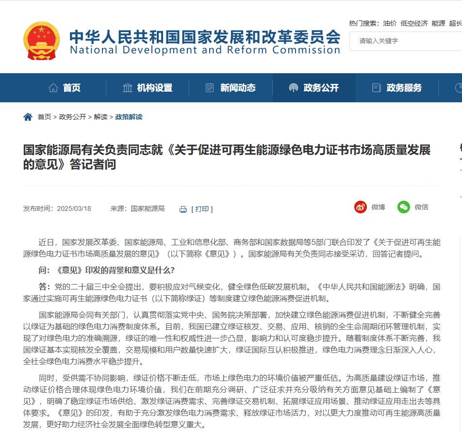 国家能源局有关负责同志就《关于促进可再生能源绿色电力证书市场高质量发展的意见》答记者问