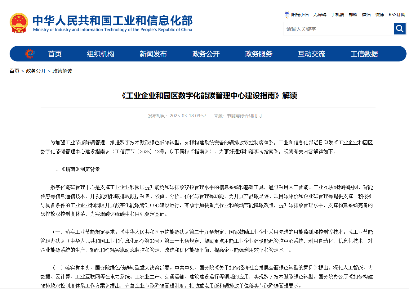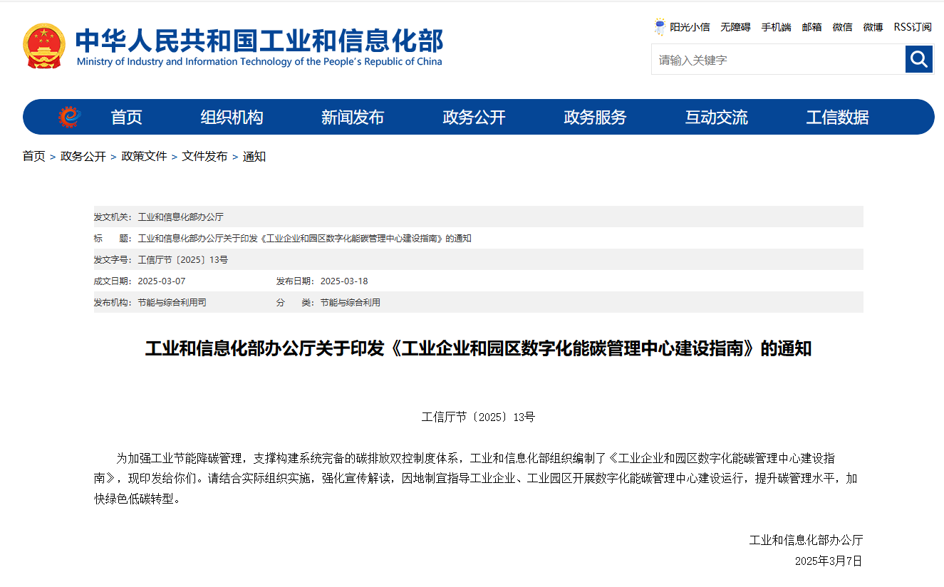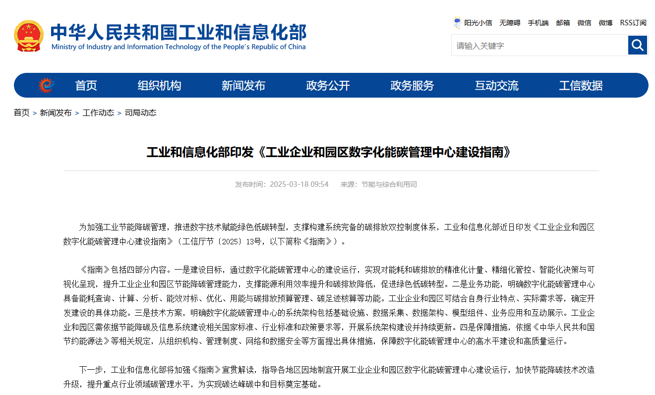 工业和信息化部印发《工业企业和园区数字化能碳管理中心建设指南》